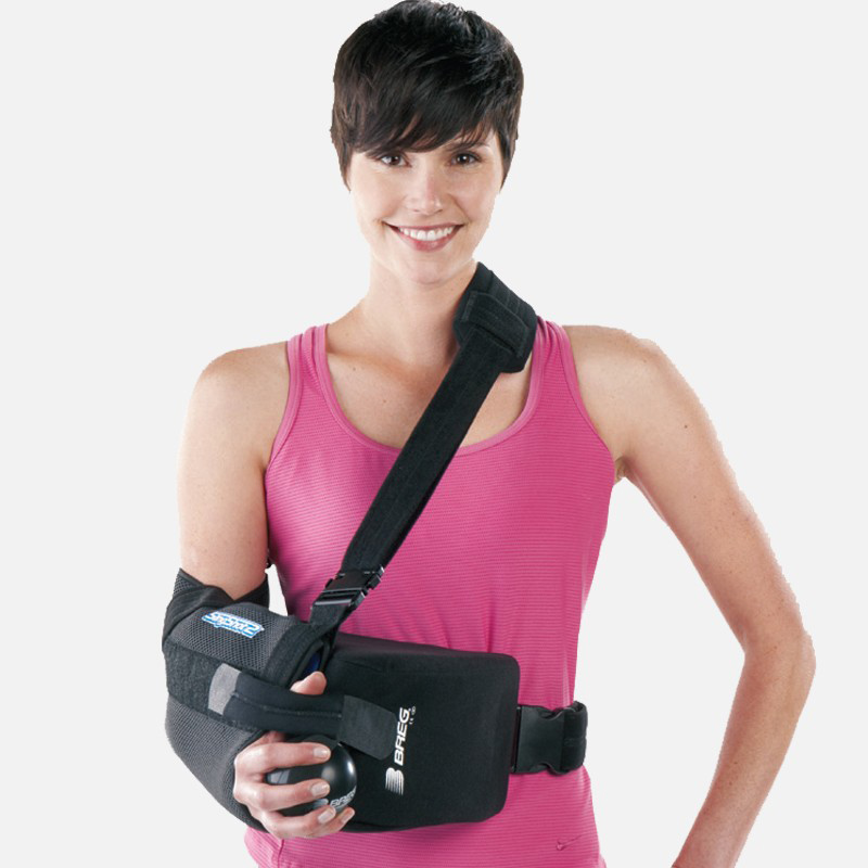 Designed to place the humerus in a neutral position of rotation, Breg’s SlingShot Neutral Shoulder Brace is a cool, comfortable shoulder immobilizer lined with breathable airmesh. It includes a neutral pillow, exercise ball and thumb rest to minimize migration.